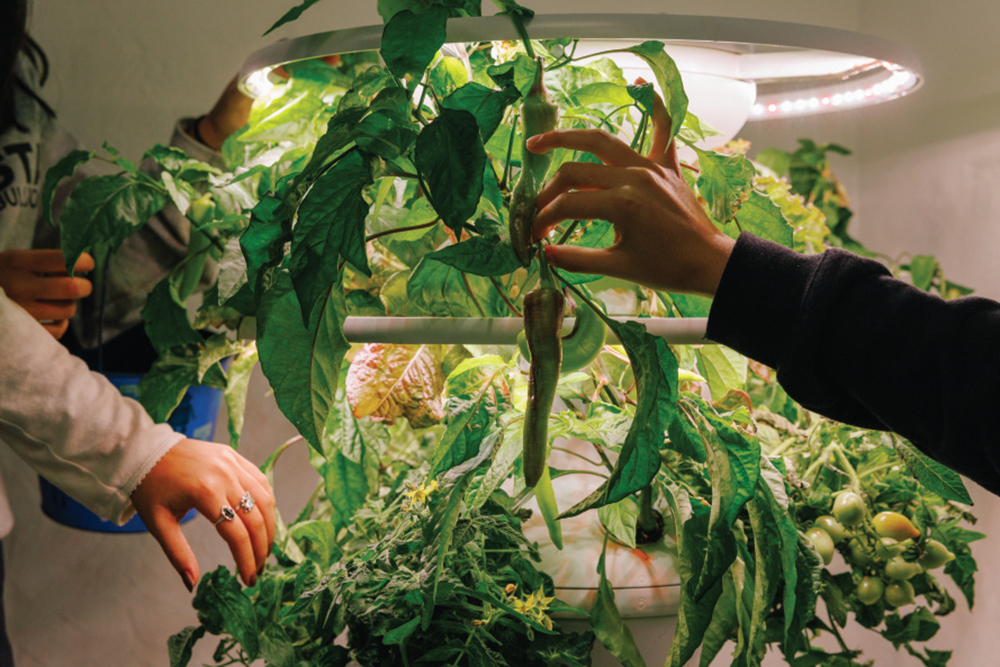 “Informally, the AgriTech program began in 2020 with three hydroponic towers we bought with grant funding,” Hess-Shamdasani says. “Once in-person schooling resumed after the pandemic, kids got so much joy from planting things, using their hands and being outside. I applied for a few more grants to purchase more towers and establish different plant systems.”
